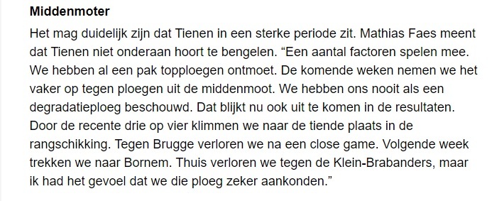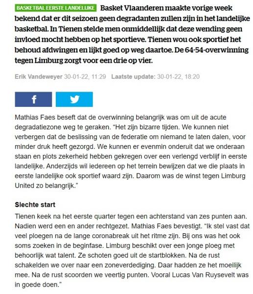 HLN 31 JAN 22 / 31 January 2022 / 0 Comments Ingediend door admin4 op 31 January 2022 HLN: https://www.hln.be/sport-in-de-buurt/mathias-faes-met-tienen-voorbij-limburg-united-we-hebben-ons-nooit-als-een-degradatieploeg-beschouwd~a68d6b51/ Login om te reageren