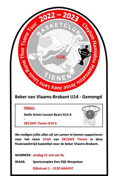 Het zou fantastisch zijn om met veel rood-witte supporters onze U14a aan te moedigen tijdens de bekerfinale op 21/5 om 9u in Haacht!