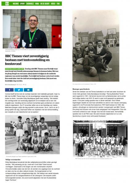 Basketbalclub 2B|SAFE Tienen viert haar 70-jarig bestaan op zaterdag 27 november 2021