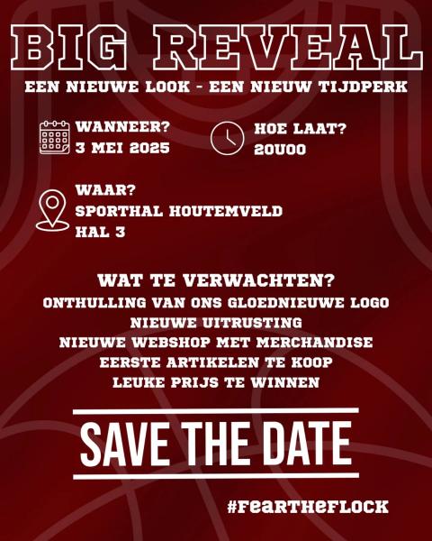 Kom op zaterdag 3 mei 2025, om 20u00, naar Sporthal Houtemveld hal 3 om samen met ons al dit nieuws te ontdekken op de BIG REVEAL!
