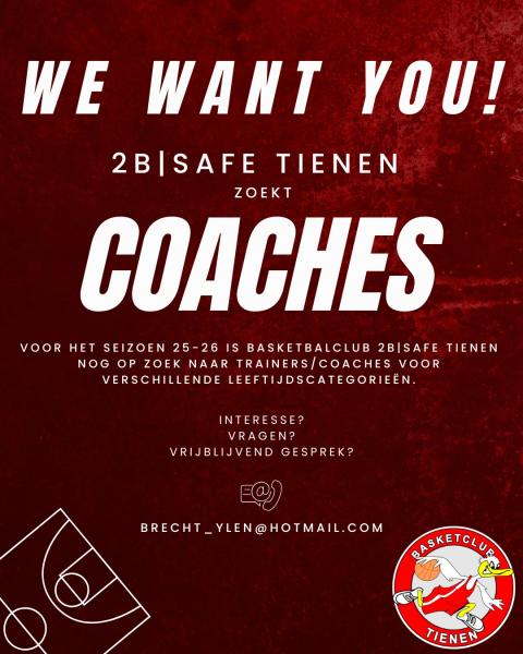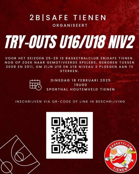 2B|SAFE Tienen organiseert try-outs om zijn U16A en U18A, beiden actief op niveau 2, te versterken voor het seizoen 25/26.